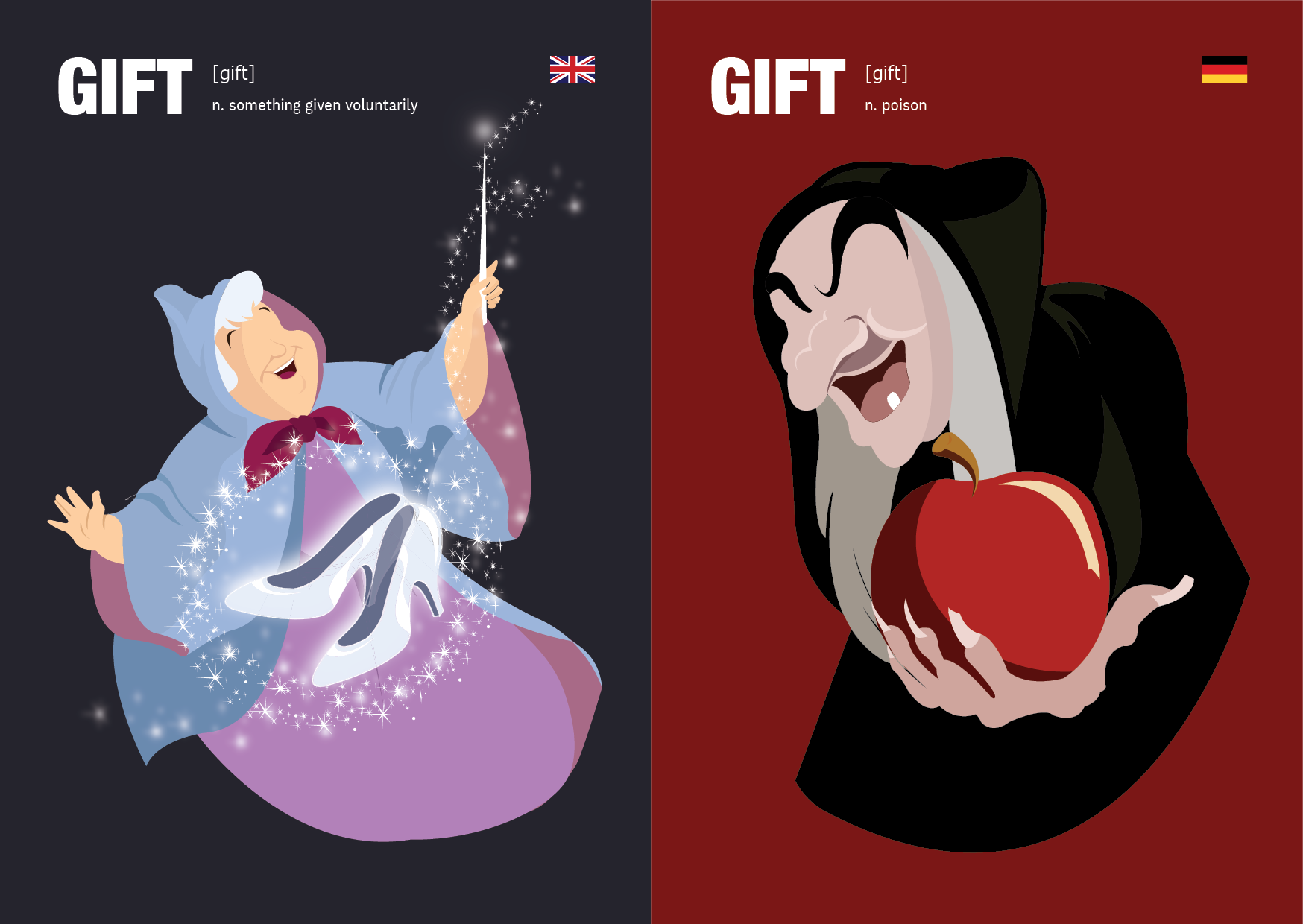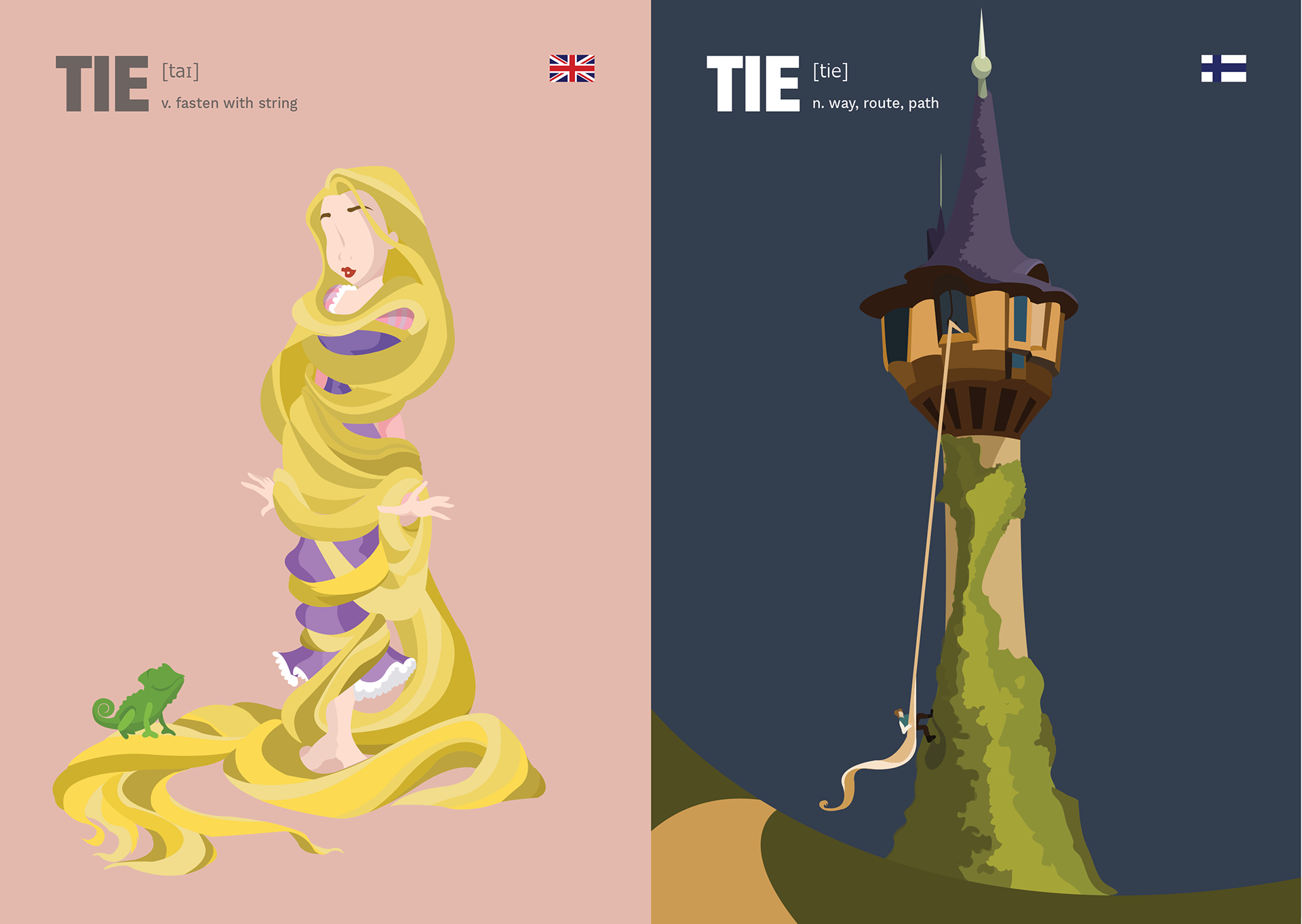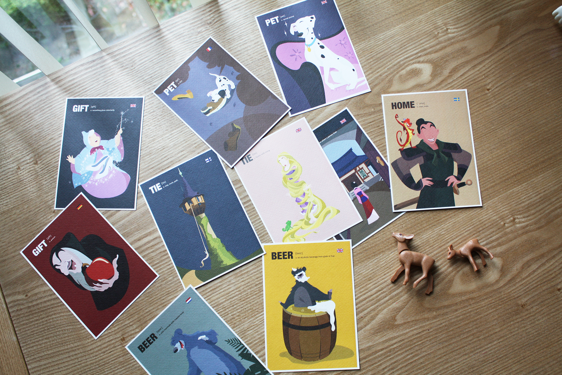 I chose to illustrate the difference between each word pair using Disney characters, as they are loved by many people and are familiar to various audiences across the world. The message will be conveyed with more impact compared to simply describing the differences, and even non-Englishrjd speakers will be able to enjoy the contents (although each illustration has a dictionary definition of the word to emphasise the meaning, it is very simple and also not essential to understand the message).
